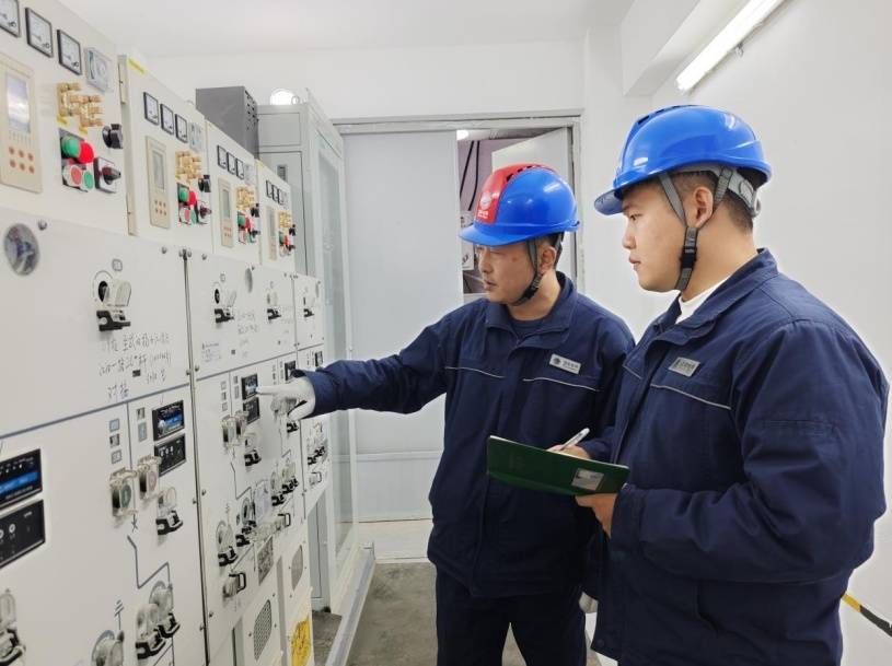 江汉一说念1号开闭所内,供电东说念主员正在查看开采。